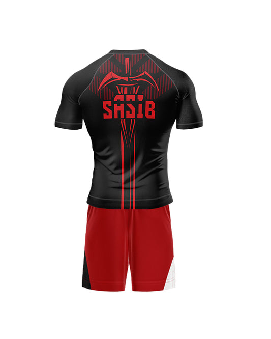 SASIB Crimson Shield Rashguard - Half Sleeves Red + SASIB Solid MMA Shorts - Red