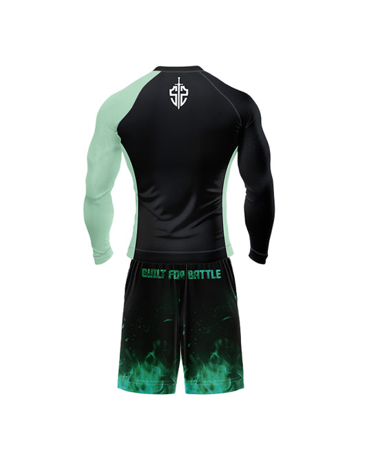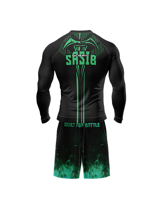 SASIB Forest Sword Rashguard (Full Sleeves Green) + SASIB Inferno MMA Shorts (Green)