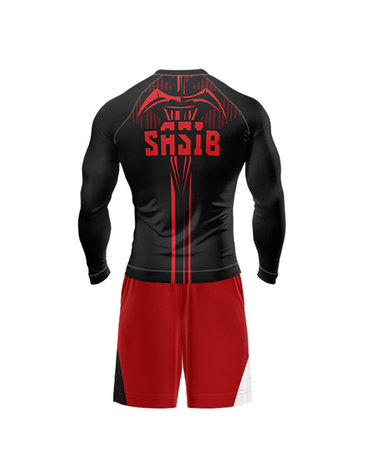 SASIB Crimson Shield Rashguard - Full Sleeves Red + SASIB Solid MMA Shorts - Red