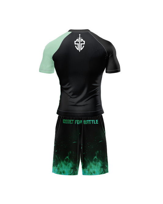 SASIB Forest Sword Rashguard (Half Sleeves Green) + SASIB Inferno MMA Shorts (Green)